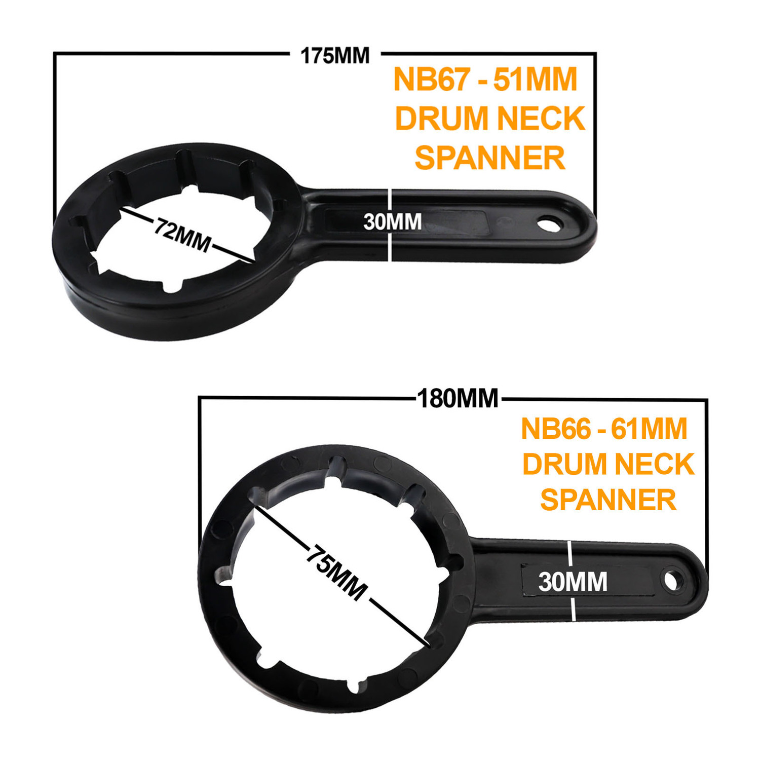 These spanners are used to tighten most IBC & Plastic drum lids with a 61mm neck/thread – the lids are universal.