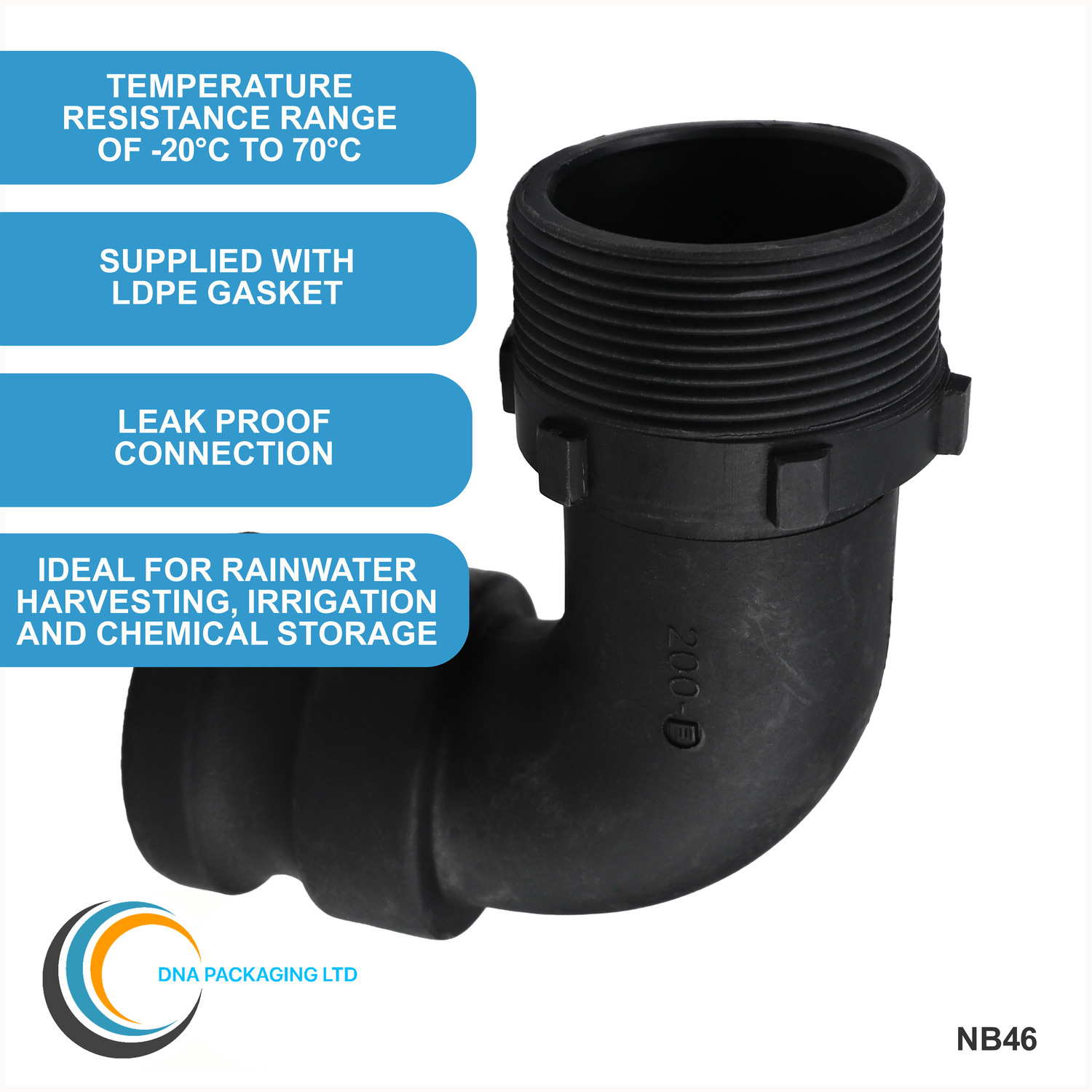 Camlock Adapter (2 inch) to BSP Male (2 Inch) 90-degree elbow