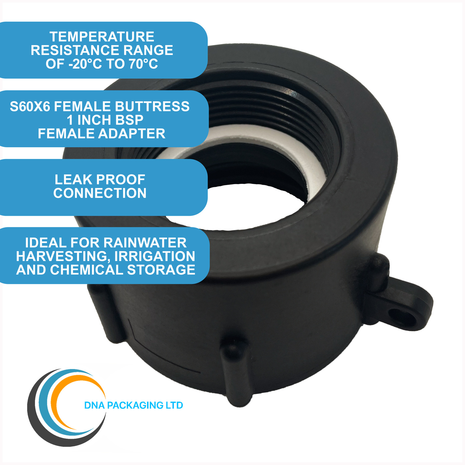 These adapters will fit most standard UK and European IBC containers where the outer thread after the valve is a S60x6 male thread. An S60x6 thread measures 60mm across from the edge of each thread and has a 6mm pitch (distance between the threads).