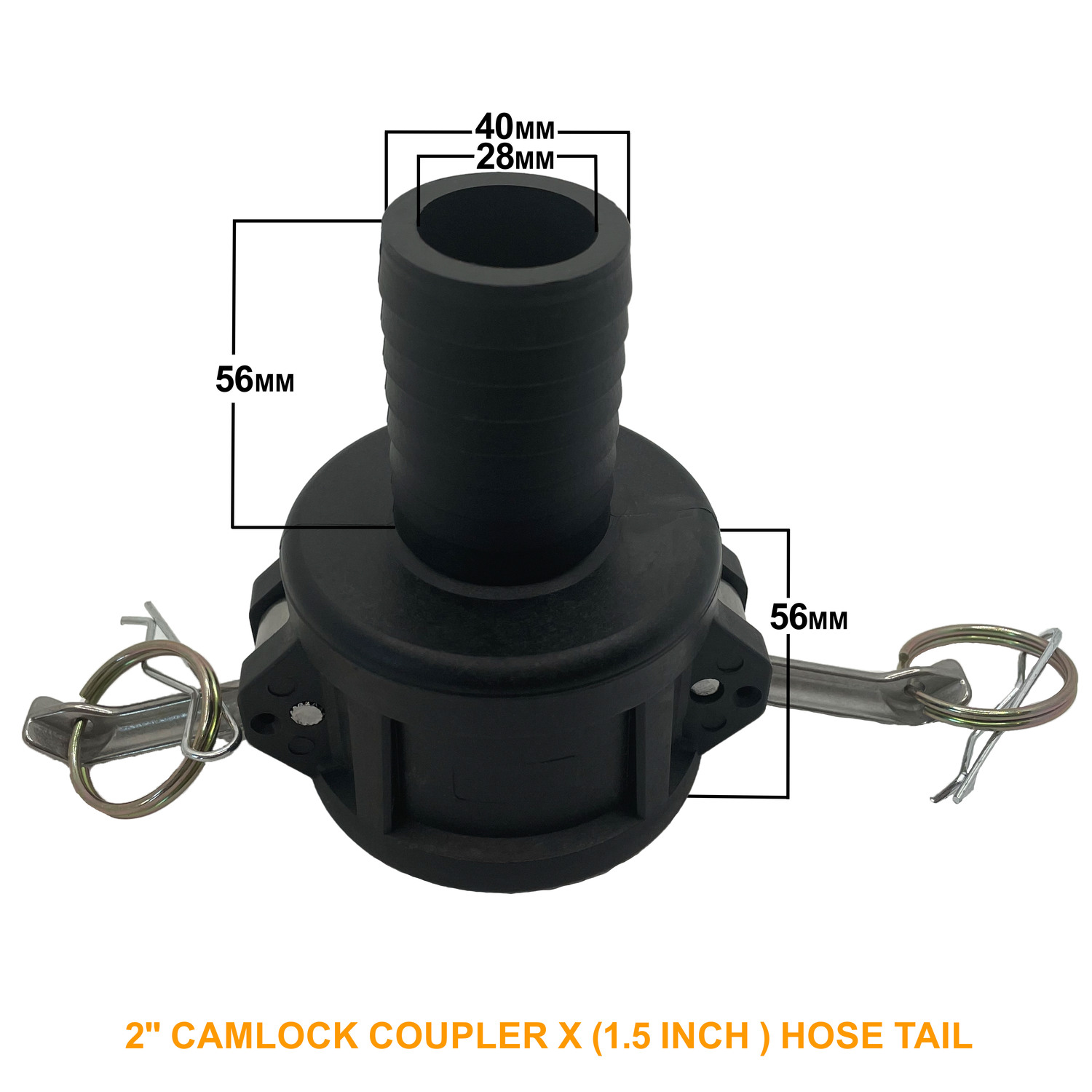 This fitting will allow a 2inch camlock fitting to be connected to a (1.5inch) hose tail. A top tip for choosing the correct size hose barb is to not measure the outer diameter (OD) of your hose, instead always measure the inner diameter (ID). So, for example if your hose has an internal diameter of 50mm (2inch), you need a 50mm (2inch) hose tail.
