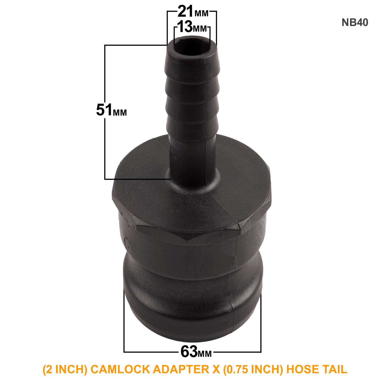 Camlock Adapters are designed to connect a cam lever to a hose barb for secure and efficient fluid transfer. Manufactured from reinforced polypropylene, this adapter is highly durable and resistant to most chemicals and hazardous materials. It comes with an LDPE gasket, ensuring a tight seal and preventing leaks. With a maximum temperature of 70°C and a minimum temperature of -20°C, it can withstand a wide range of operating conditions. Camlock Coupler, enabling quick and easy connections to most pipe fittings.