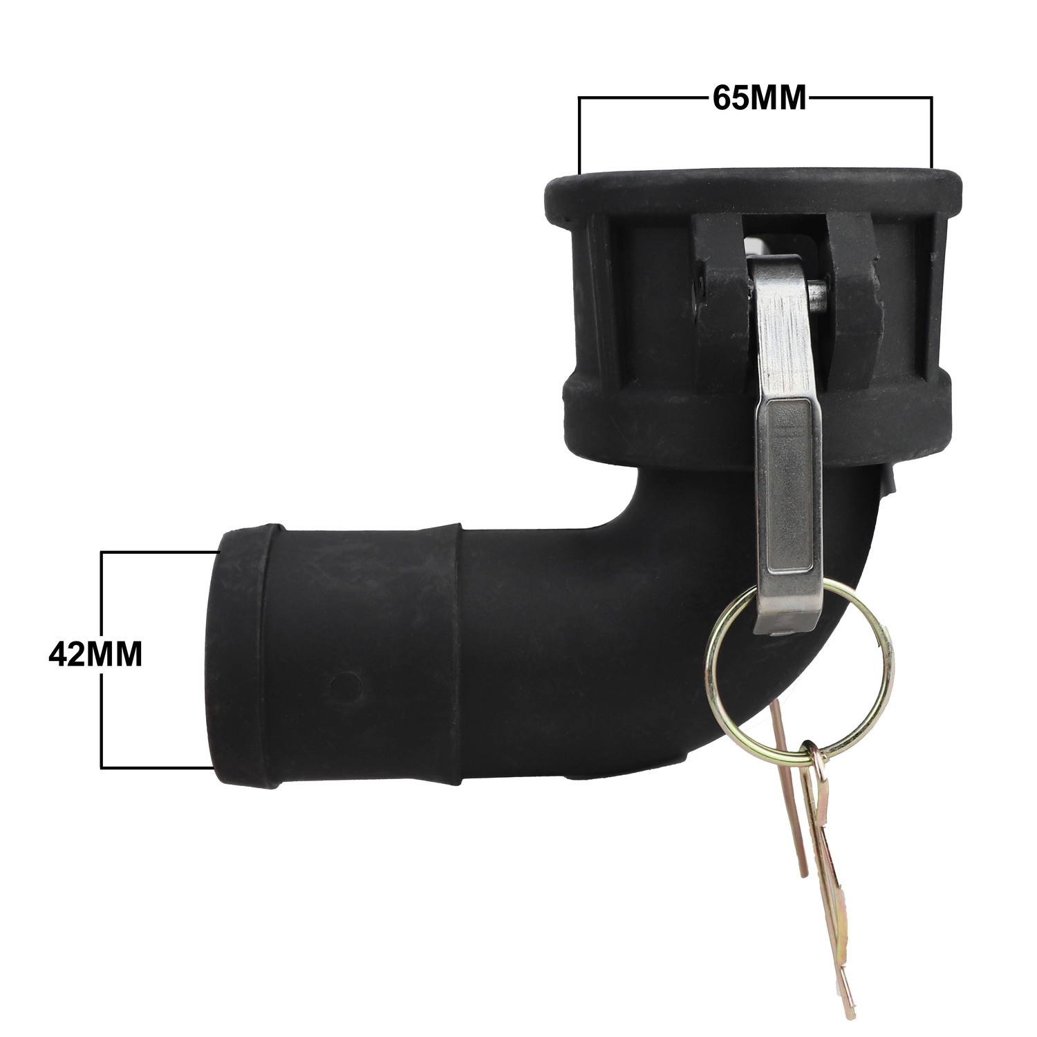 This adapter will give you a 90-deree angle to your connection. This connector will connect to an 2inch BSP Camlock Adaptor. A top tip for choosing the correct size hose barb is to not measure the outer diameter (OD) of your hose, instead always measure the inner diameter (ID). So, for example if your hose has an internal diameter of 50mm (2inch), you need a 50mm (2inch) hose tail.