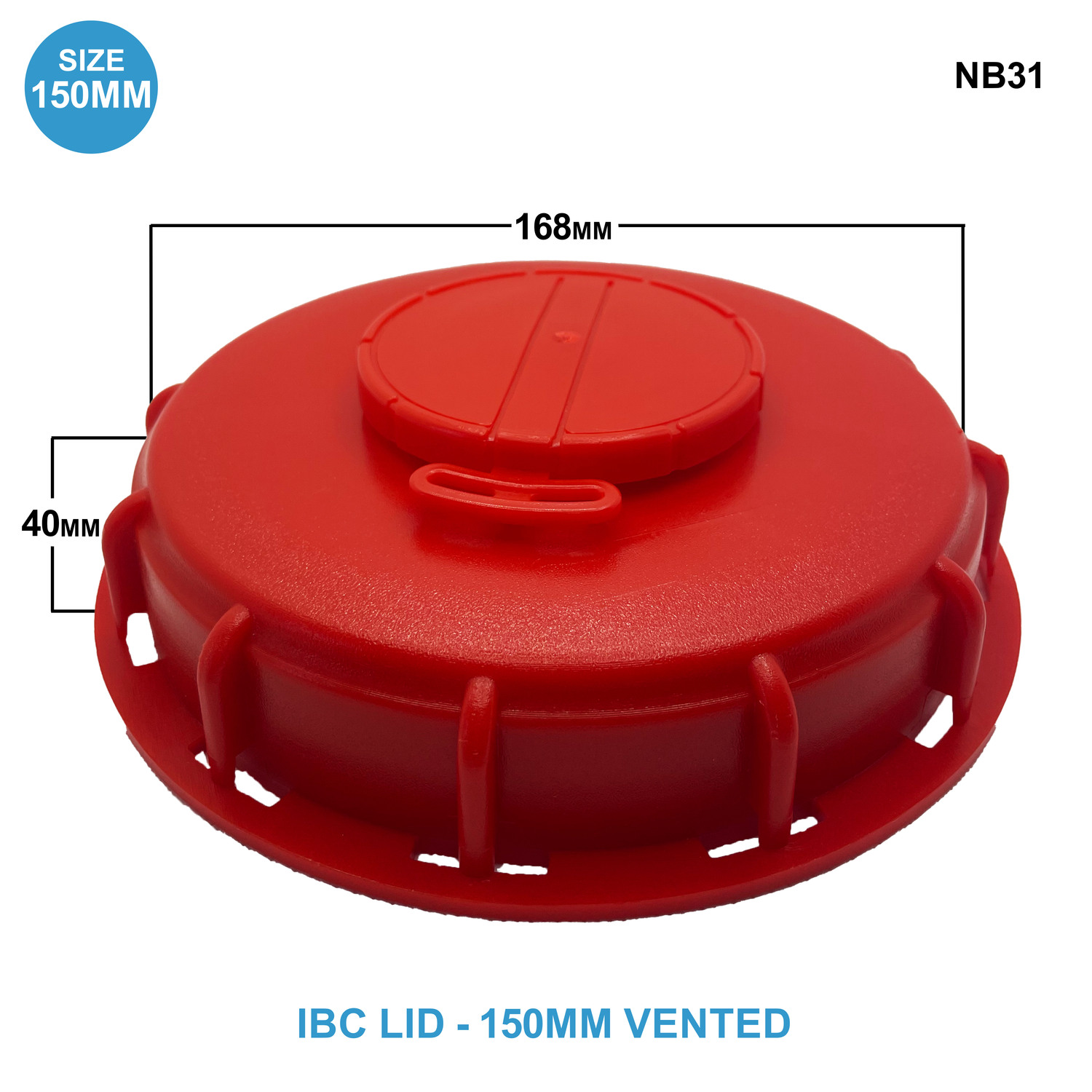 This 150mm (6 inch) IBC fill lid features a vented breather port to allow pressure to release from the tank, This lid will fit all models with a standard 150mm (6 inch) opening.