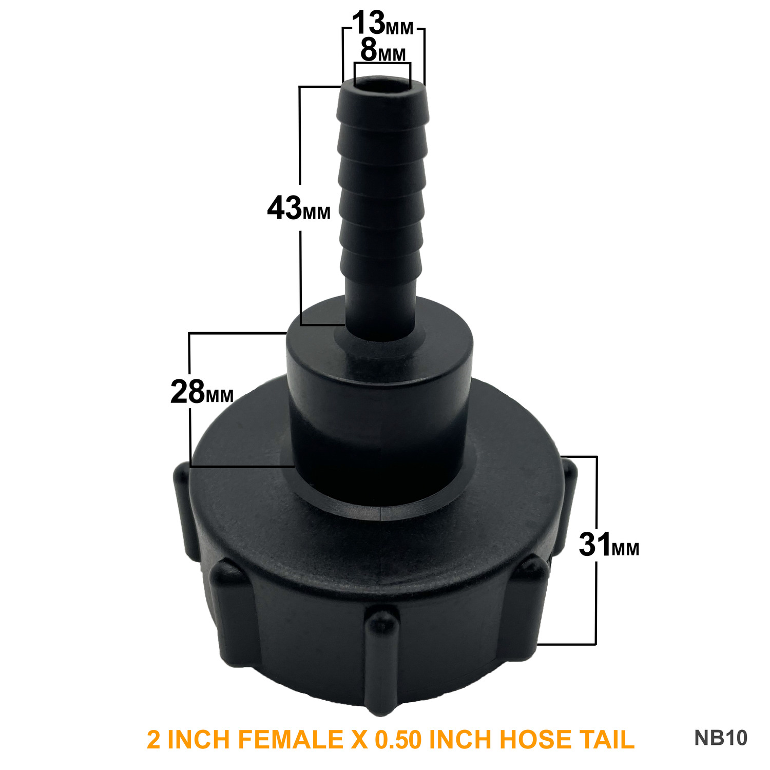 A top tip for choosing the correct size hose barb is to not measure the outer diameter (OD) of your hose, instead always measure the inner diameter (ID). So, for example if your hose has an internal diameter of 50mm (2inch), you need a 50mm (2inch) hose tail.