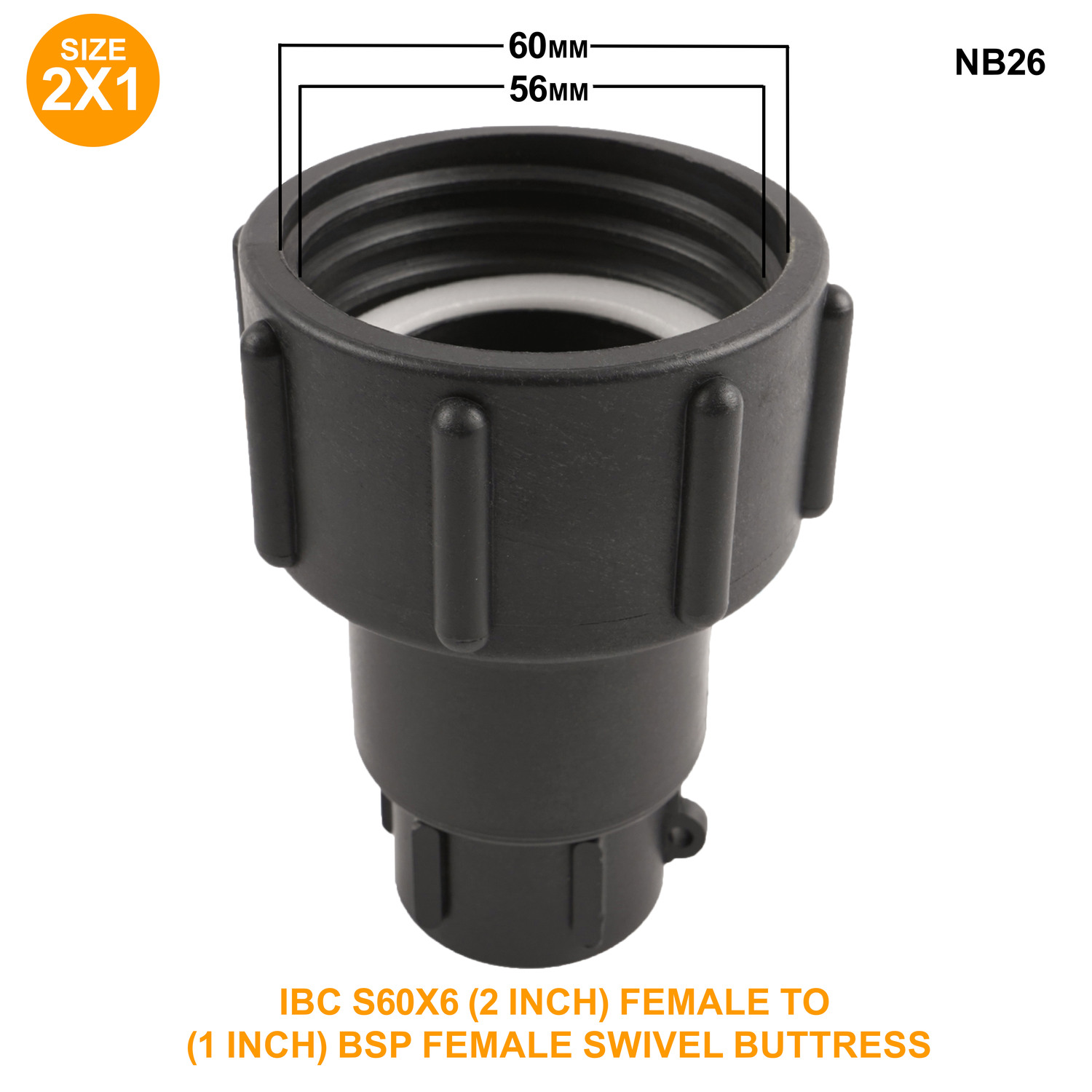IBC S60x6 (2 inch) Female to (1 inch) BSP Female Swivel Buttress