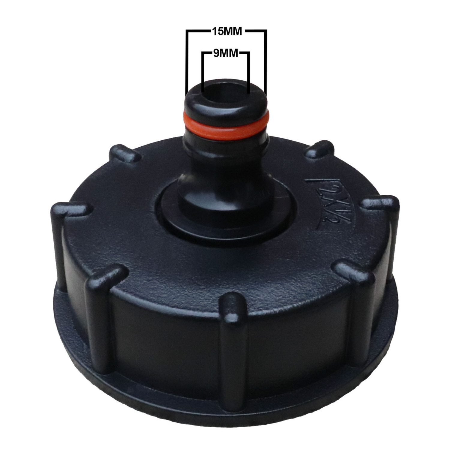 This fitting will allow a ½” Hozelock garden hose to be connected to your IBC.