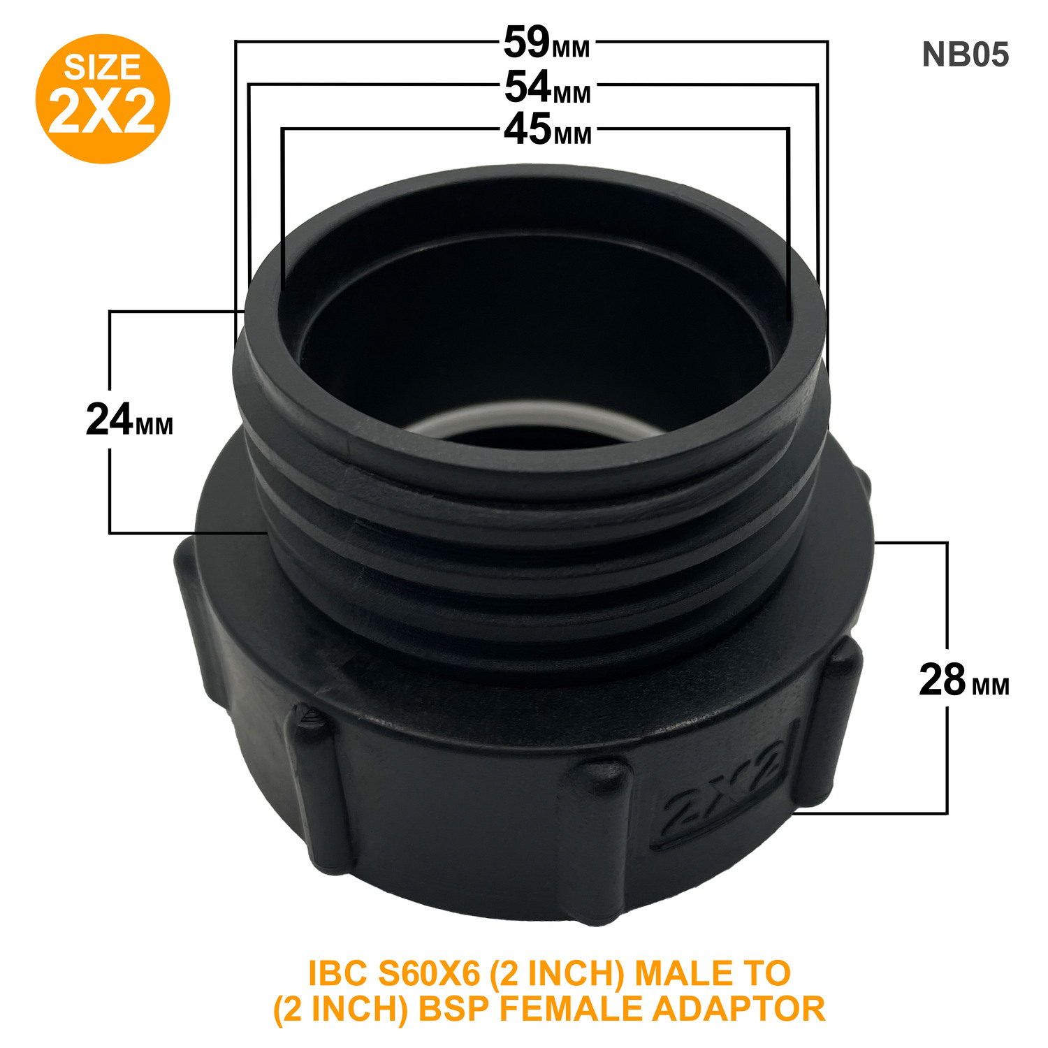 IBC S60x6 (2 inch) Male to (60mm) BSP Female Adaptor